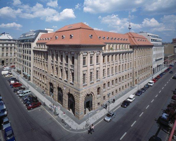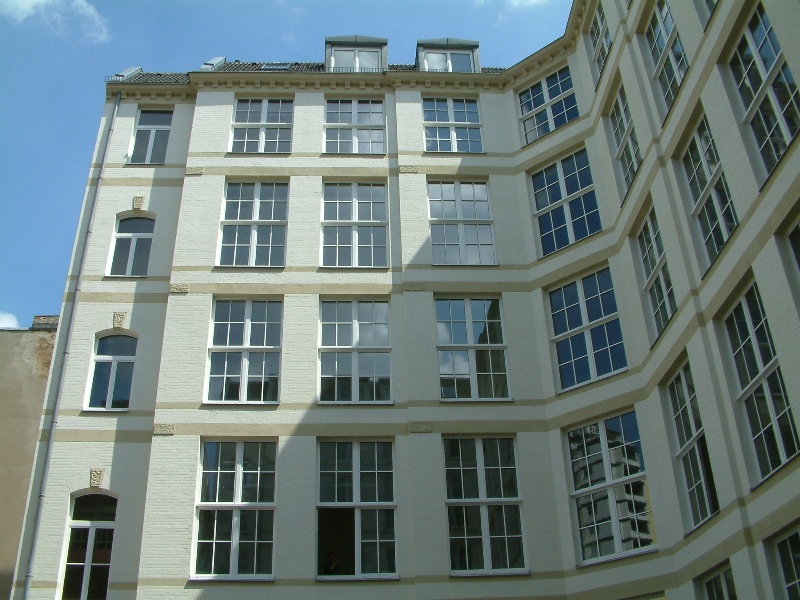 KfW BerlinWestturm eines Geschäftshauses in Berlin, Hirschbergerstrasse und Teilstück einer Fassade des Innenhofs