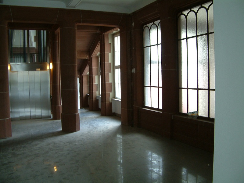Reinigung und Instandsetzung des Sandsteintreppenhaus.