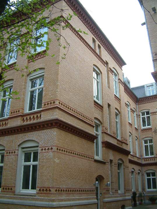 Abdichtung Kelleraußenwand durch Schleiervergelung, Betoninstandsetzung, Spritzbeton und Klinkerinstandsetzung Hoffassade.